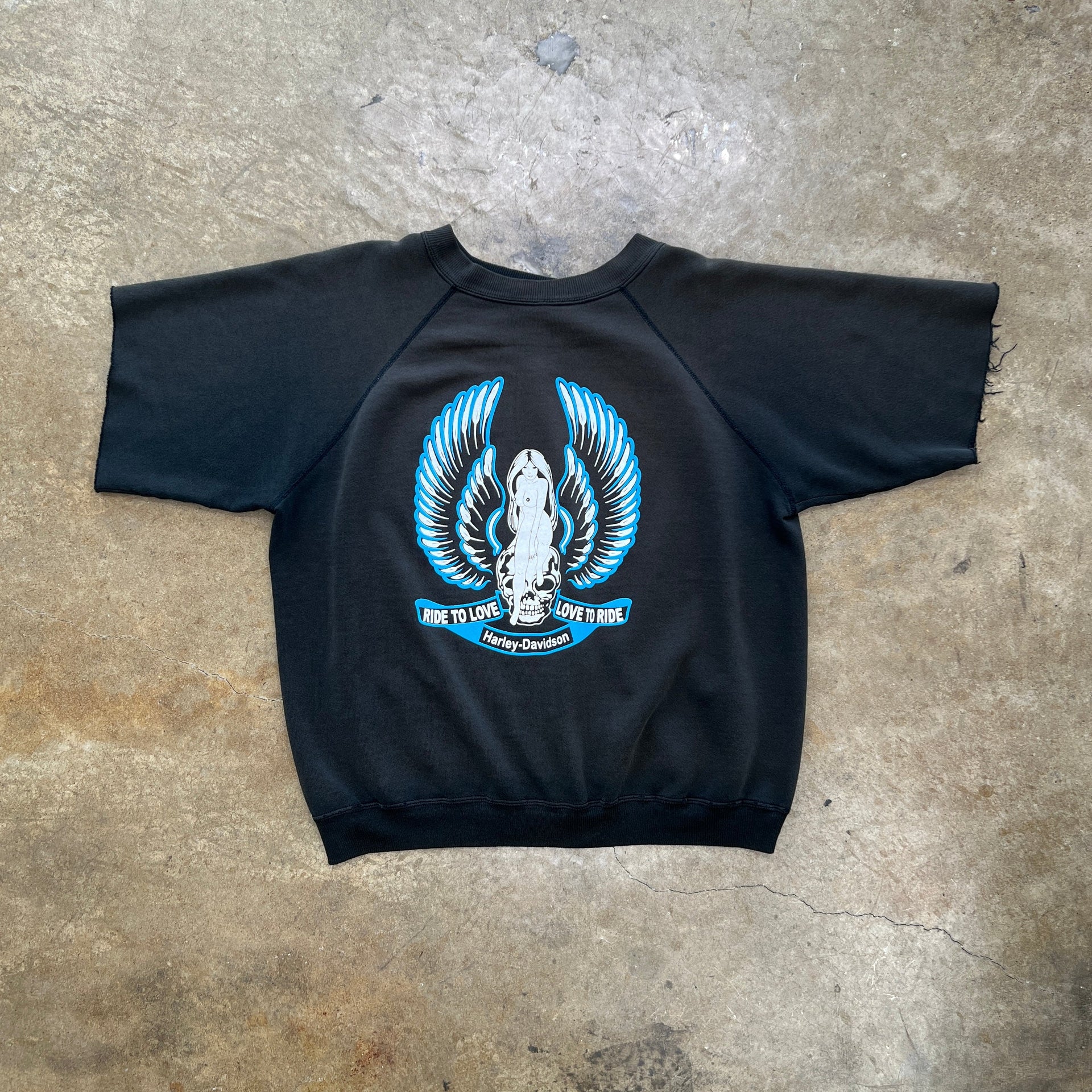 80s Harley Davidson Naked Angel Love to Ride Cut Crewneck