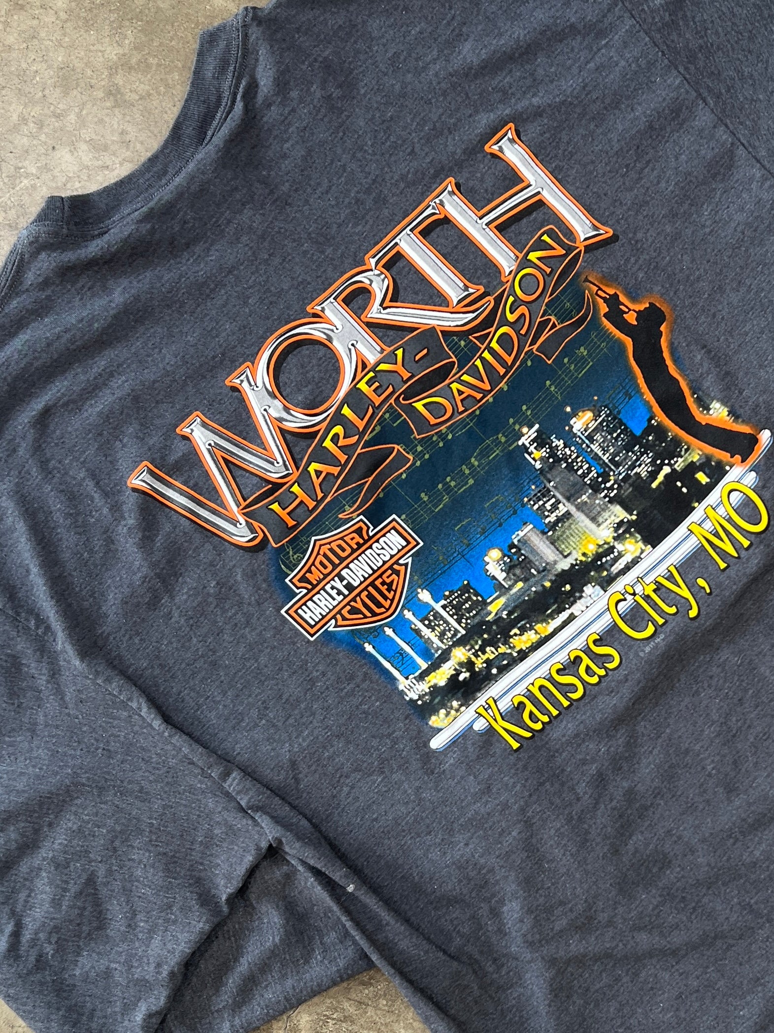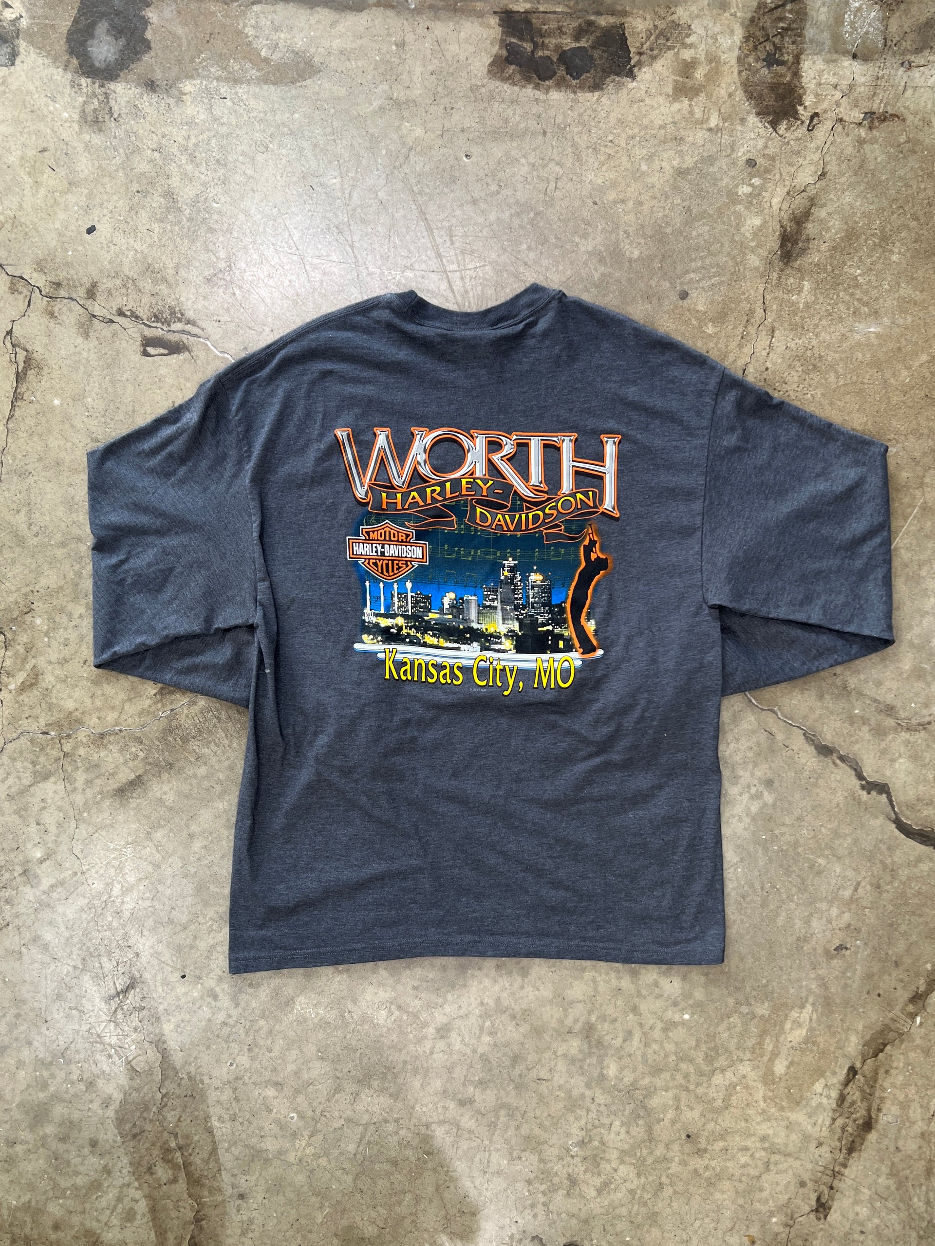 Harley Davidson Worth Missouri Flame Sleeve Motorcycle LS Tee
